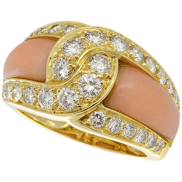 ヴィンテージ サンゴ ダイヤ リング K18YG