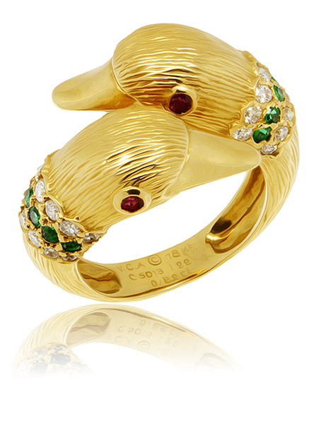 フラミンゴ ダイヤ エメラルド ルビー リング K18YG